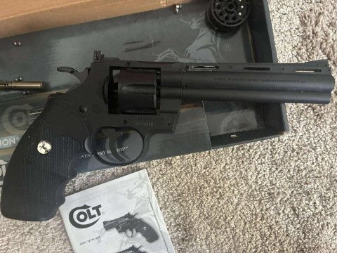 Prodám Python .357 Magnum CTG od Umarex. Zbraň je funkční, používaná, ale v dobrém stavu (viz foto). Osobní odběr HK nebo pošlu Zásilkovnou (+89kč)