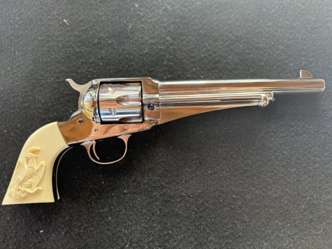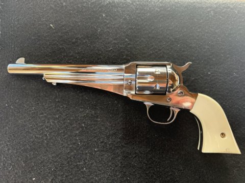 Prodám krásný velmi málo střílený Remington 1875 v ráži 45.Colt od Firmy Uberti, hlaveň 7.5 palce, drážky jako nové, zrcadlový povrch, krásné mexické střenky, zánovní stav, zbraň je novovýroba a je na ní potřeba ZP a nákupní povolení - více info po telefonu