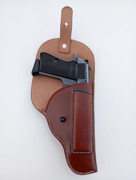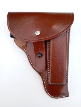 Perfektní replika německého hnědého pouzdra na Československou pistoli vz. 27. Pouzdro je vyrobené z pravé kůže s ražením jako originál. Bez problémů pasuje i CZ 50/70, Walther PP ( viz foto ), Makarov PM nebo zbraně podobné velikosti. Nové, nepoužité, velmi kvalitní zpracování. Po dohodě mohu zaslat přes balíkovnu do balíkovny ( 50 + dobírka 0), přes balíkovnu na adresu ( 105 + dobírka 19 ), přes zásilkovnu ( 89 + dobírka 26 ), převodem na účet před odesláním bez dobírky nebo osobně.