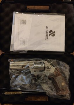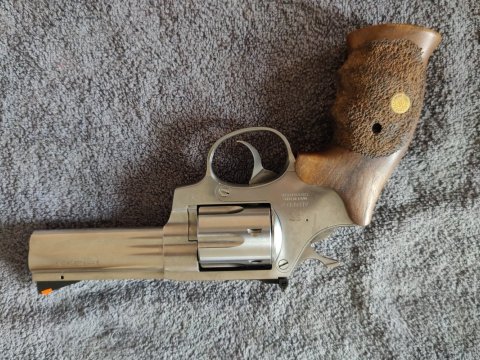 Prodám revolver ALFA 9941 9mm flobert v nerezovém provedení se dřevěnými střenkami a stavitelnými mířidly. Revolver na zakázku vyrobený, je zcela nový, nikdy nevystřelená ani rána. Sbírkový stav. Záruka do 12/2027