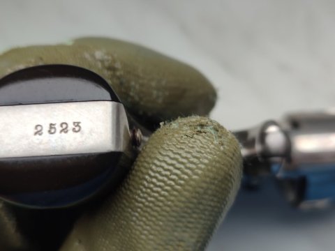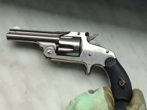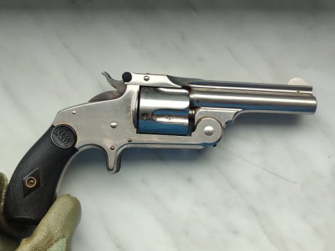 Prodám Revolver Smith & Wesson Single Action 2nd Model v kalibru .38. sériové číslo: 2523 Rok výroby: 1878 Kalibr: .38Mechanicky dobrém stavu - minimální vůle na válci.Plně funkční v režimu - SA Hlaveň je v dobrém stavu - drobné stopy po černém prachu.Povrchové úprava - nikl v 93%.Na zbrani drobné oděrky z běžného používání / čištění.Střenky vyrobené z tvrdé gumy v dobrém stavu.Běžně dostupné střelivo.Zbraň kategorie D. Volně prodejné od 18-ti let. Zakoupením potvrzujete plnoletost