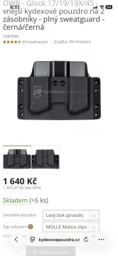 Vnější pouzdro na dva zásobníky Glock, uchycení Molle vazbou, ale lze vyměnit za klasická poutka (40/45/50mm).