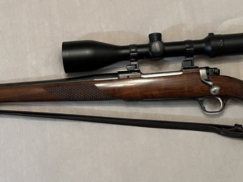 Kulovnice je pro leváky. Má dělanou pažbu od puškaře se schránkou na 4 náboje v pažbě. Pouze potřeba načernit hlaveň a vyleštit dřevo jinak plně funkční. Ke kulovnici je optika Meopta MEOSTAR R1 3-12X56 RD a cca 100 nábojů. Federal soft point 11,7g: 48ks, Norma oryx 13g: 37ks a Sellier a Bellot SP 11,7g: 15ks.