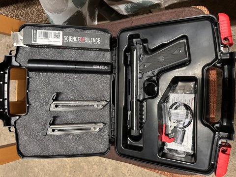 Prodám pistoli Ruger Mark IV Tactical, včetně tlumiče, vystřeleno zhruba 200 nábojů, jen leží v trezoru. Orinální balení, dva zásobníky a přidám 600 nábojů. Cena pevná