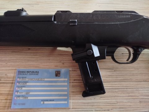 Prodám samonabíjecí karabinu Ruger PC-9 Carbine v ráži 9mm Luger. Velmi pěkná, málo střílená, zachovalá. Zbraň kategorie B, prodej možný jen při předložení nákupního povolení a platného ZP.