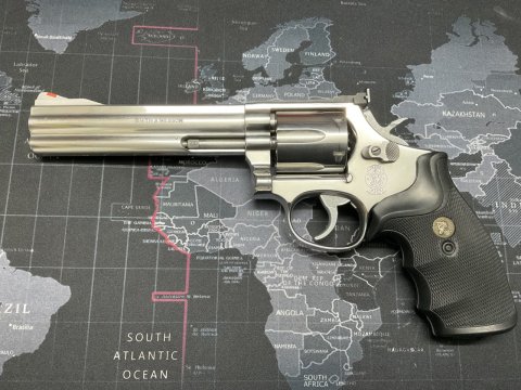 Prodám revolver Smith&Wesson 686 6 v ráži 357 Magnum.Zakoupen v aukci v roce 2017 v Německu.Mnou nikdy nestřílen,uložena v trezoru.Top stav,bez jediného škrábance.