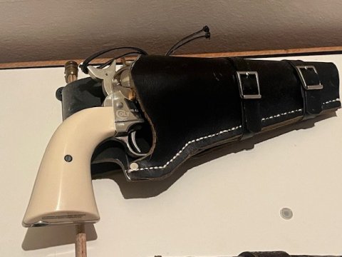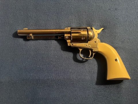 Prodám revolver SAA 1873 Co2, ráže 4,5 mm diabolo. Revolver je ve stavu nového kusu, sloužil jako dekorace, vystřeleno 36 ran. Má drážkovanou hlaveň, je tudíž na diabolky, je překvapivě přesný. Dokoupeno 12 ks nábojnic (tedy celkem k revolveru 18 ks) a ručně šitý kožený holster, to vše je součástí prodeje. Dále přidám krabičku diabolek a nějaké 12 g Co2 bombičky. Předání v Praze, nebo po platbě předem na účet možno poslat PPL.