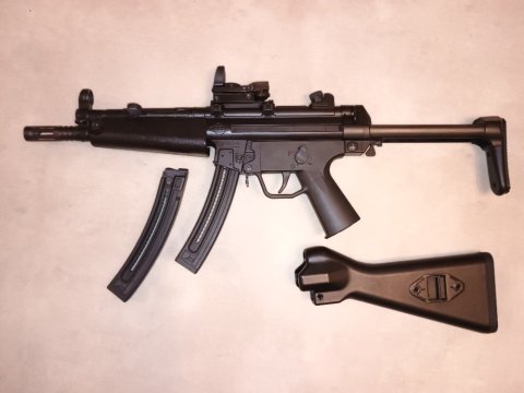 Samonabíjecí GSG-5, .22LR, malorážková MP5, v dobrém stavu, kolimátor čína, ale drží nástřel, ZP + NP sk. B. PLATÍ DO SMAZÁNÍ. Odpovědi prosím na e-mail.