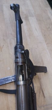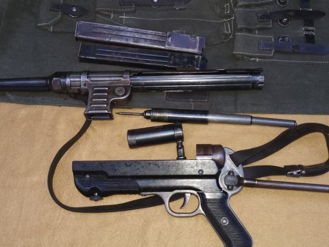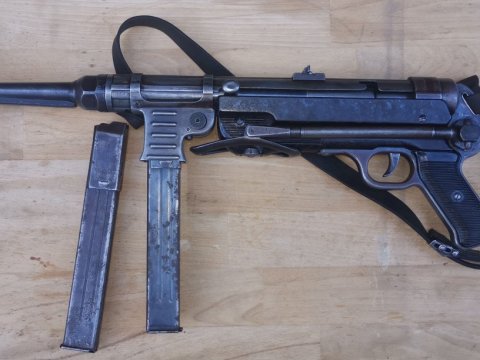 Prodávám originální německý samopal M40, upravený na pušku samonabíjecí puškařstvím Niedermeier. Zbraň je dobře spasovaná, byť není na stejných číslech. V CRZ zapsán výrobce Erma jakožto firma, která je za války vyráběla. Ke zbrani jsou dva originální zásobníky, ražené Kur 43 a Fxo 41. Dále je v ceně ke zbrani originální popruh, a bytelné, byť replikové, přepravní pouzdro Luftwaffe Fallschirmjäger. Prodej samozřejmě za podmínky předložení platného ZP a NP kategorie A-1. Další fotografie mailem.
