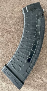 Prodám nový Schmeisser zásobník pro AK-47 - 60 ranný. Cena : 1.600,- (PC 2.300,-)