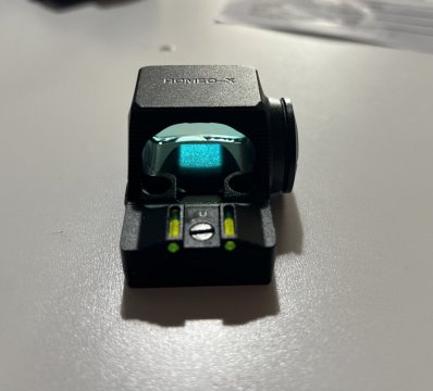 Prodám nový nepoužitý kolimator , replika SigSauer RomeoX . Mělo by to umět i autoON/autoOFF . Kdyz to došlo , zjistil sem že se mi to nevleze na žádnou zbraň , takže posílám dál jako nové nepoužité - rozbaleno jen na fotku . 32MOA Rozměry : L x W xH 46x38x28mm Včetně montážní destičky / šroubku / klíčů a baterie