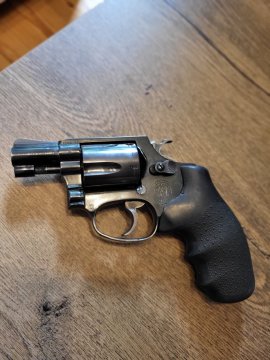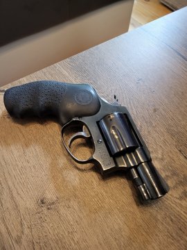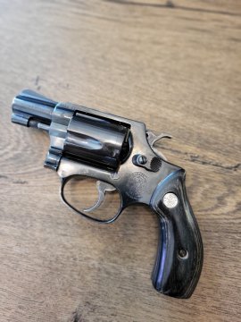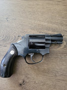 Prodám revolver Smith & Wesson 38 SPL, ve velmi pěkném stavu, délka hlavně 2" (5cm), vystříleno pouze 350 nábojů, nepoužívaný. Revolver má dva druhy střenek dřevěné a gumové pro lepší úchop viz. foto + textilní pouzdro. ZP a NP nutností