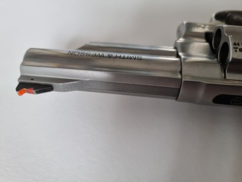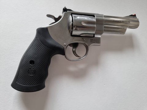 Prodám SW 629 44 Magnum, SA/DA, hlaveň 4", nerez, 6 ran, vystříleno do 100 nábojů, koupeno 6.2025, muška upravena pro rychlou sebeobrannou střelbu. Původní cena 41 000 Kč, nyní 33 000 Kč.