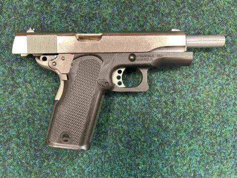 Pistole samonabíjecí výrobce Springfield Armory model 1911A1 v ráži 45 Auto. K pistoli není zásobník. Zásobník je dvouřadý. Zbraň kategorie B.