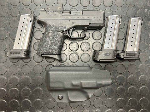 Pistole samonabíjecí výrobce Springfield Armory XDS-9 3.3" Mod 2 v ráži 9 mm Luger. Ke zbrani jsou celkem čtyři zásobníky a IWB kydexové pouzdro. Zbraň je vybavena kolimátorem CT. Zbraň má nástřel 200 ran. Zbraň kategorie R3.