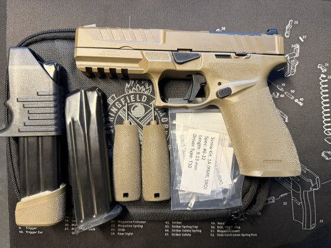 Prodám samonabíjecí pistoli Springfield Echelon FDE fullsize. Zbraň jsem kupoval tento rok v dubnu, takže je ještě v záruce. Ke zbrani přikládám veškeré původní příslušenství, včetně dvou zásobníků(20 a 17). Navíc ke zbrani přidám vnější pouzdro Frogy pro praváka od RH Holsters. Zbraň nenošená a má nastříleno do 500 nábojů. ZP a NP samozřejmostí.