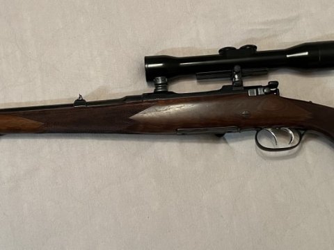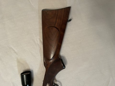 Na kulovnici je nová pažba a repasovaný puškohled ZEISS 4x32. V pažbě je schránka na 3 náboje.