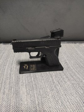 Prodám 3D tištěný stojánek na pistoli XDM případně glock 43X, 43, 48. Logo / nápis je možné po domluvě upravit. Dostupné barvy: černá, písková, zelená.
