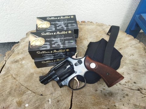 Prodám zachovalý revolver Taurus 80 s 2 palcovou hlavní, ráže .38 special. Funkčně 100%, povrchovka velmi pěkná včetně dřevěných střenek. Přidám látkové pouzdro Dasta a 200 ks střeliva S&B.