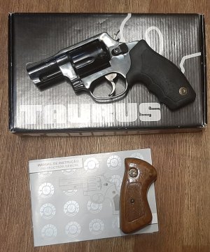 Revolver Taurus 85 S (.38 special) Prodám zánovní revolver Taurus 85 S. Vhodný pro skryté nošení, kompaktní velikost, 2"hlaveň. Originál dřevěné pažbičky, gumové pažbičky Celoocelová konstrukce. Original krabičky