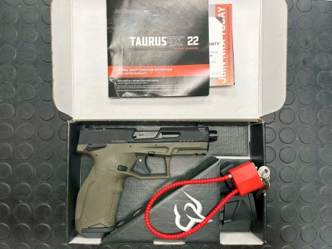 Pistole samonabíjecí výrobce Taurus TX22 2 generace v ráži 22LR. Ke zbrani jsou celkem dva zásobníky a původní obal včetně originálního příslušenství. Nástřel zbraně do 500 ran. Zbraň kategorie R3.