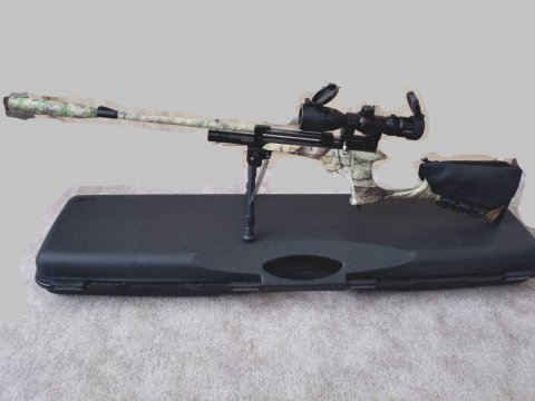 Pro trénink juniora, ráže 4,5mm, ze zbraní firmy SPA: Artemis CP2 (pažba, předpažbí, dlouhá hlaveň, držák hlavně) a PP800R (činná část PCP). Regulátor nastavený na 130barů, výkon s dlouhou hlavní až 20J. Velmi přesná (10-25m). SPA účinný kompenzátor hluku. Kartuš 40cc zajistí 10 ran při tlaku cca 100bar. Osazeno puškohledem 3-9x32AOL s nastavitelnou paralaxou od 6,5m, dioptrická korekce, kříž Mildot. 2 zásobníky (po 9 ), jednoranná redukce, příslušenství, bipod, kufr, brašna na pažbě. Zánovní.