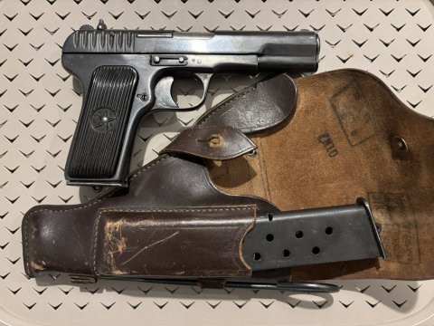 Prodám TT-33 Tokarev rok 1942 včetně koženého pouzdra a druhého zásobníku. Nabízím i náboje 7,62x25 za 5 Kč/ks