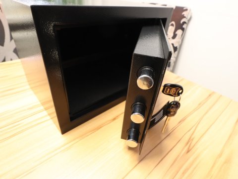 Nový trezor, vhodný i jako dárek, se zámkem 2x klíč a návod. Vhodný na peníze, zbraně, klíče, dokumenty, harddisky, atd. Je rozměrný, bez problémů se vejde i 5 zbraní a náboje, vyzkoušeno na 2x revolver s vel hlavní 6“ a 4“, pistole Walther PPQ M2 SD Navy 4,6“ a 200ks nábojů. Rozměry 35x25x25cm: police, vevnitř kobereček. Vzadu a naspodku 2xdíry pro upevnění do stěny/nábytku. Bez záruky = Dodání: Praha 14, Praha-Zlín 1x/měsíc; pošta/zásilkovna/dobírka: 80kč balné do krabice + poštovní předem