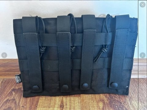 Koupená nová za 304 Kč. Použitá pouze jednou.Trojitá otevřená sumka Primal Gear v černé barvě je vyrobena z odolného Nylonu 1000D. Je kompatibilní s MOLLE systémem a nabízí bezpečné uložení tří zásobníků pro AK. Díky elastickému lanku zůstávají zásobníky pevně na místě.