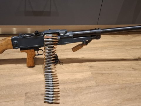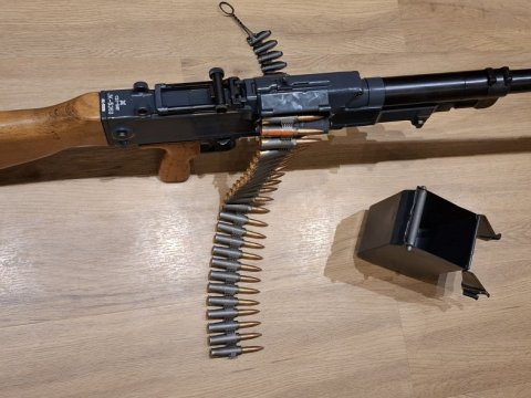 Prodám UK-59 T v krásnem stavu. Nastříleno maximálně 200 nábojů. Samonabíjecí zbraň kat. A-I, úpravce Zelený sport Součástí je zbraň, těžká hlaveň, nábojový pás, schránka a dvojnožka.