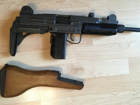 Prodám samonabíjecí izraelskou pušku UZI-S, ráže 9 mm Luger, sklopná i pevná pažba, 3 zásobníky.