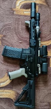 prodám V-AR 223 Rem. 8,5 palce, pístová, dlouhý tlumič plamene, nový typ loweru, nerezová hlaveň s kanelací, oboustranneé ovládací prvky, doražeč, QD očko, Magpul doplňky, v ceně lineární kompenzátor V-AR, přepravní pouzdro, jednobodový řemen Tasmanian Tiger, stav nové zbraně