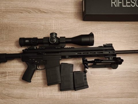 Prodám V-AR v ráži .308 Win. M-lock , Magpul oboustranné ovládací prvky. Zbraň je osazená rychloupínací montáží s libelou a optikou Ninox fire 5-25x56 ffp. Bipod FORTMEIER . Těžká hlaveň 22″ s vývrtem 1:11 Má nastříleno kolem 300 ran a po každé střelbě je čištěná , na rámu je pár oděrek po manipulaci jinak je v novotě , hlaveň zrcadlo. Prodám tak jak je se vším všudy za 60 000 CZK