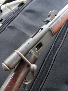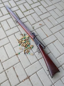 Sčíslovaná! trubicový zás., povrchová patina. Středový zápal. Přidám 38 nábojů(černý prach) / (20 potaženo teflonem) dá se koupit přebíjecí sada-nebo dám kontakt na puškaře. Státní zkušebna, (skrytě) můžete ofi. na střelnici. Vidličkový úderník na okrajový zápal, umístěný v bodce. Jednoduchou výměnu lze opět střílet náboje s okrajovým zápalem (pokud by se začaly zase vyrábět). Včetně nového pouzdra. Výroba do r1890, stačí věk 18l. Komplet: puška zkušebna náboje pouzdro=29000Kč