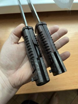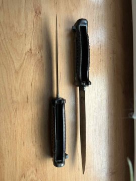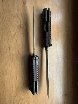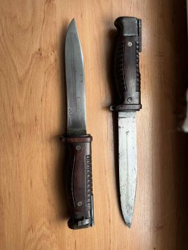 Prodám dva originál velmi vzácné německé bodáky SG42. Značení viditelné, stiskátka funkční, jdou nasadit na pušku. Ke každému bodáku přidám jako bonus replikovou pochvu a nářadí. Za priginalitu ručim vracením peněz. Velmi obtížně sehnatelná záležitost i v absolutně špatném stavu. Cena za kus je 45 000Kč.