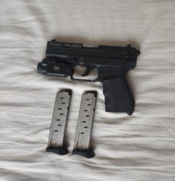Dobrý den, prodám pistoli Walther PK 380 v ráži 9mm Browning, svítilna s funkcí stroboskopu, talon grip, nastříleno do 700 ran, ke zbrani 2x zásobník a několik pouzder jal vnitřních tak venkovních na svítilnu i bez, pistole málo nošená ale ideální na EDC.