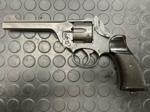 Revolver Webley pro RAF v ráži .38 Special. Revolver je v pěkném sběratelském stavu. Hlaveň má zrcadlový vývrt s ostrými drážkami. Revolver je označen platnou zkušební značkou BNP. Zbraň kategorie R3.