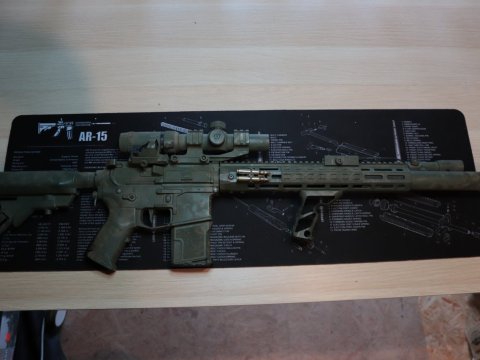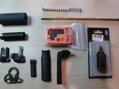 Prodám airsoftovou pušku M4 MUR od výrobce E&L s optikou(Vektor Optick 1-5x24) s postranním kolimátorem, popruhem, 7 zásobníky a 3 bateriemi + přidám některé původní díly. Úsťová rychlost 170 m/s 0,2g, 130 m/s 0,32g (2,7 J) Ve zbrani: ASG kola, Specna Arms Bezuhlíkový motor, Retro Arms CNC mechabox, RA ložiska, RA ramínko poloosy Pružina M150, MAXX CNC Hop-up komora, Jeftron V2 procesorová jednotka, hlaveň 430 + tlumič a středění, baterie 1200 mAH 11,1 V