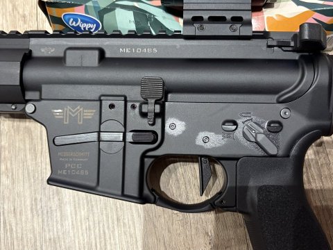 Samonabíjecí puška Messerschmitt AR15-9 PCC 10,5" 9 mm luger v záruce ještě rok a půl + hodně kvalitních dílů a doplňků oproti původní pušce viz foto + 3x zásobník GLOCK. Nástřel do 1.000 ran. Přechod na AR 15. Prvotní kontakt prosím emailem, otázky rád zdpovím.