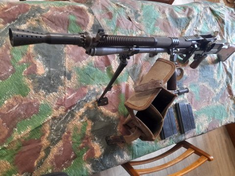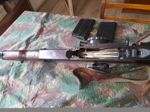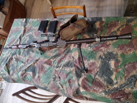 Nabízím k prodeji samonabíjecí pušku Iron Works předělanou z lehkého kulometu vz. 30J. Zbraň prodávám s nástavcem pro střelbu cvičnou municí, s 2ks originálních zásobníků a s brašnou na 7ks zásobníků. Zbraň je v ráži 8x57JS.